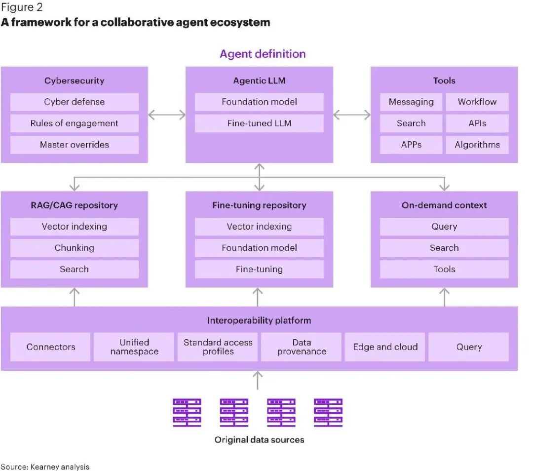 Kearney提出的协作Agentic AI系统架构,是其Agentic AI架构的核心落地载体,以分层互通、可控协作为核心逻辑,构建起支撑企业级多智能体规模化协同的结构化体系,精准破解了传统AI系统孤立、跨域协同性弱的痛点,成为企业兑现Agentic AI价值的基础架构。