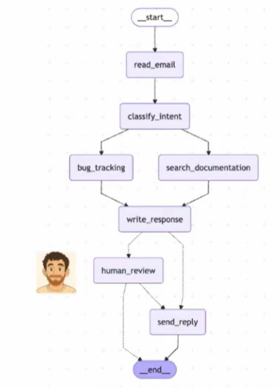 上期内容 [LangGraph1.0速通指南(二)—— LangGraph1.0 条件边、记忆、人在回路]分享了条件边、智能体记忆和人在回路等核心机制。通过点、边、条件边的组合,大家已经能够搭建起具备记忆能力并支持人工介入的智能体工作流。为了帮助大家更熟练地掌握这些概念,并体会其在真实场景中的应用,本期笔者将把前两期所学的知识——包括状态、节点、边、条件路由、记忆与中断机制——融会贯通,动手构建一个自动邮件处理智能体项目。