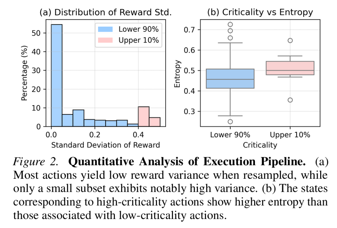 - 与之形成鲜明对比的是,约10%的少量行动属于高关键性。改变这些决策点可能使最终奖励从成功急剧转向失败。这些是智能体做出关键决策的时刻。