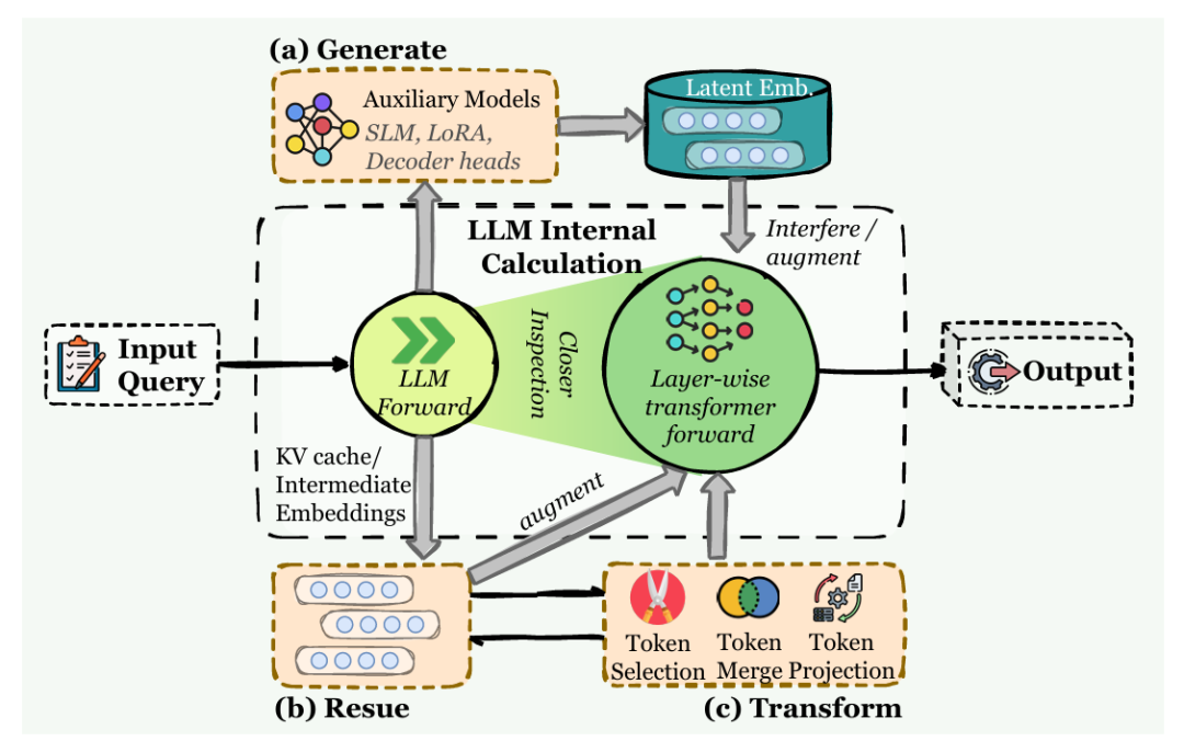 - 变换: 对现有的潜在状态进行压缩、修剪或重构,以创建更紧凑、信息密度更高的表示,在保真度和效率之间取得平衡。
