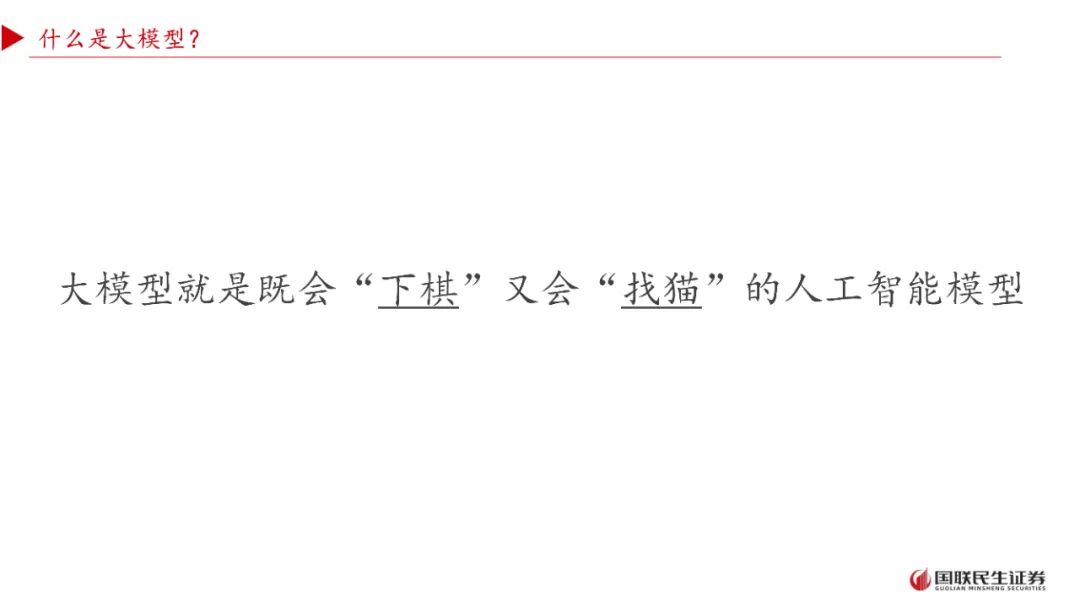 大语言模型(以 ChatGPT 为标志)被视作“人工智能的 iPhone 时刻”,是“大数据 + 大算力 + 强算法”的集大成者,其内部形成了一座隐式知识库。它不仅能回答问题、生成文本、翻译语言,还催生了 AIGC 在医疗、金融、教育等多领域的爆发式落地,并反向拉动算力、服务器等底层技术革命。报告用“既会下棋又会找猫”来形象概括大模型的通用性:在智慧农业里,它构建产业生态,实现监控、溯源、数字化加工;在晋控煤业的智慧矿山中,AI 替代危险岗位,将井下安全事故减少 90% 以上。