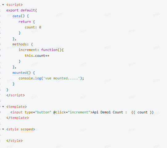 选项式API:可以用包含多个选项的对象来描述组件的逻辑,如:data,methods,mounted等。选项定义的属性都会暴露在函数内部的this上,它会指向当前的组件实例。