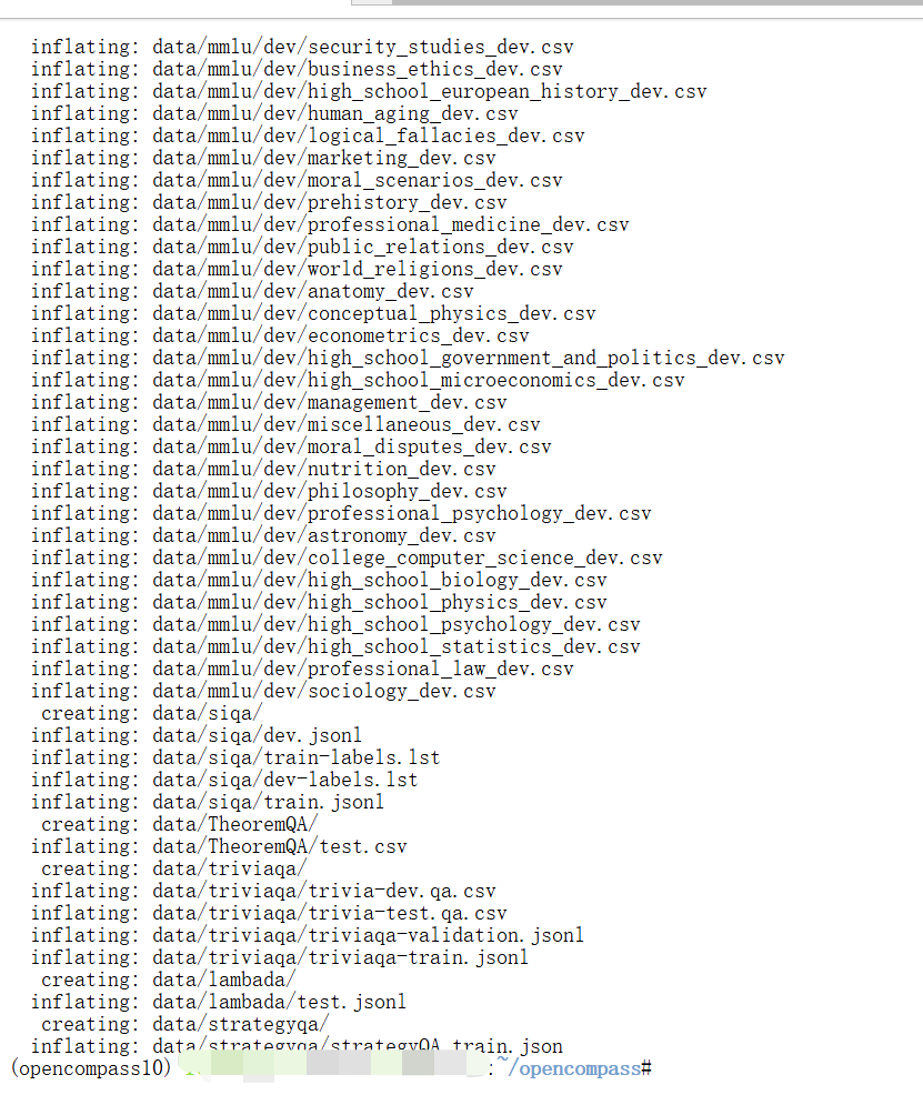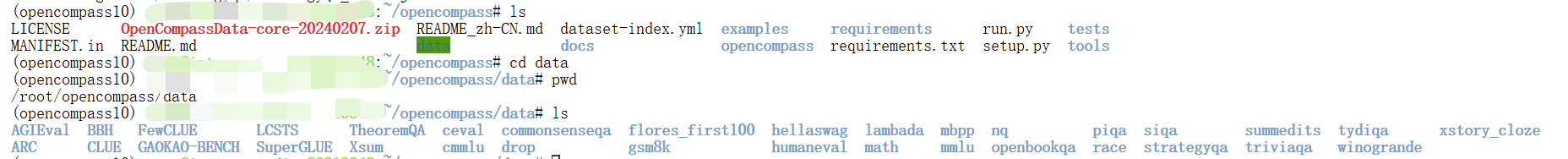 将会在 OpenCompass 下看到data文件夹,里面包含的数据集如下图所示: