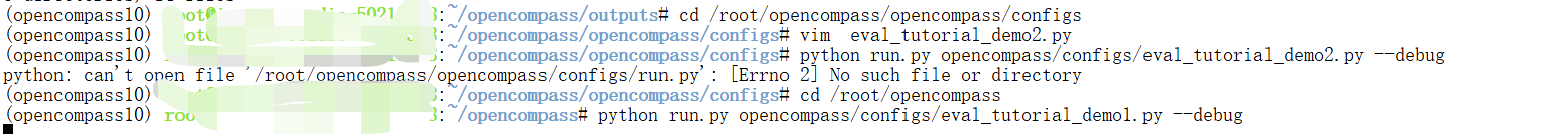 python run.py opencompass/configs/eval_tutorial_demo2.py --debug