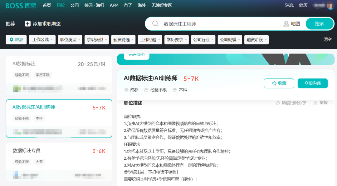 01 门槛低且有一定潜力:数据标注工程师(3-10K)