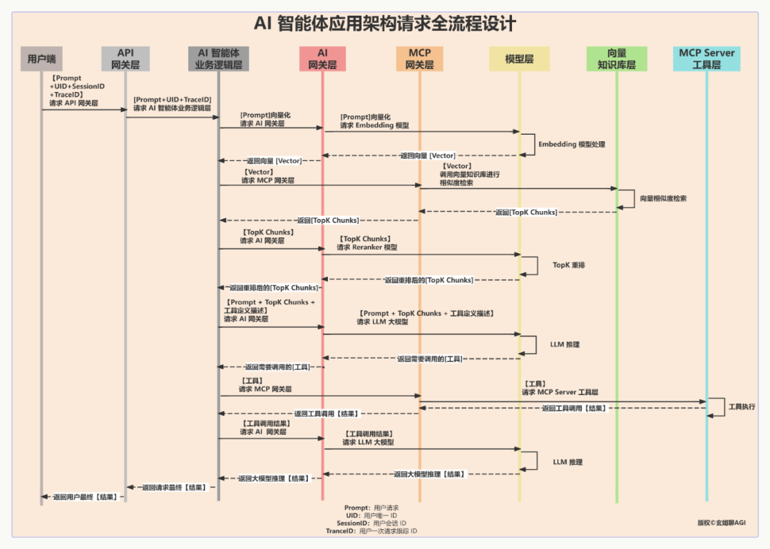 下面我们对 AI 智能体应用架构设计的请求全流程进行详细解读。