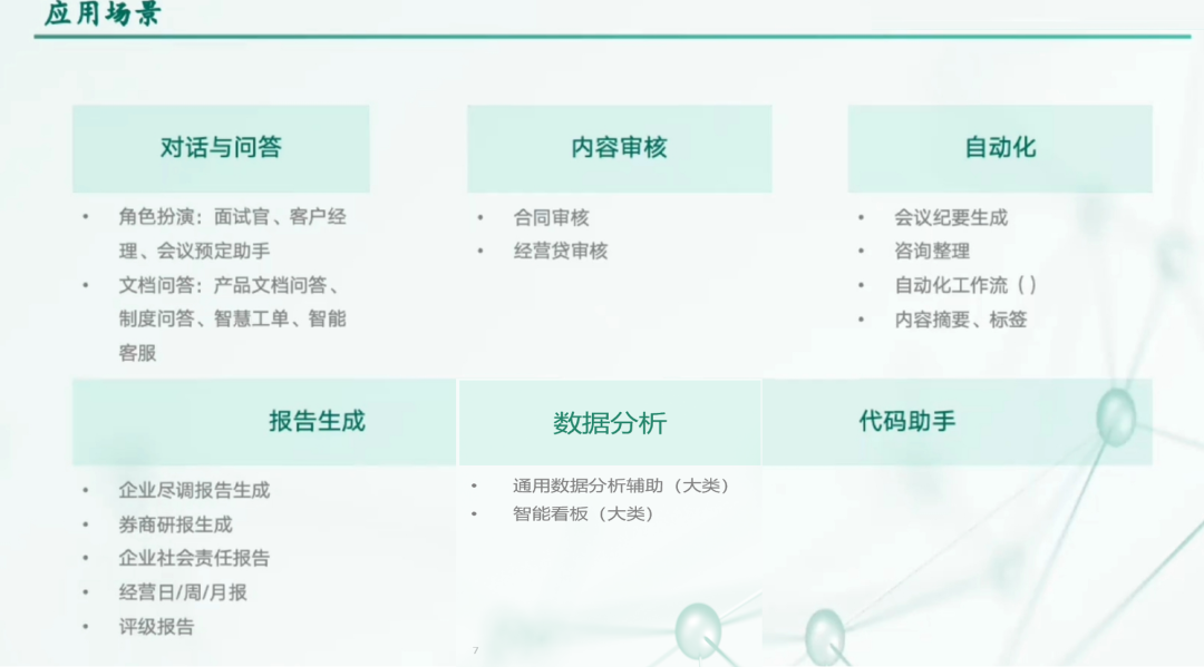 AI 智能体已经在企业的众多场景中落地,比如:对话与问答、报告生成、内容审核、流程自动化、可视化数据分析、AI 编程等。