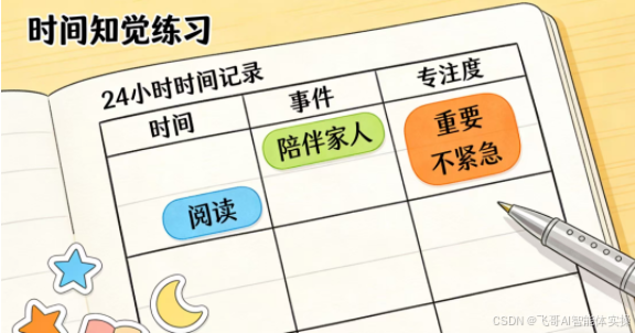 1. 记录24小时:明天每完成一件事就简单记录(无需精确到分,比如“早餐时刷了20分钟手机”)
