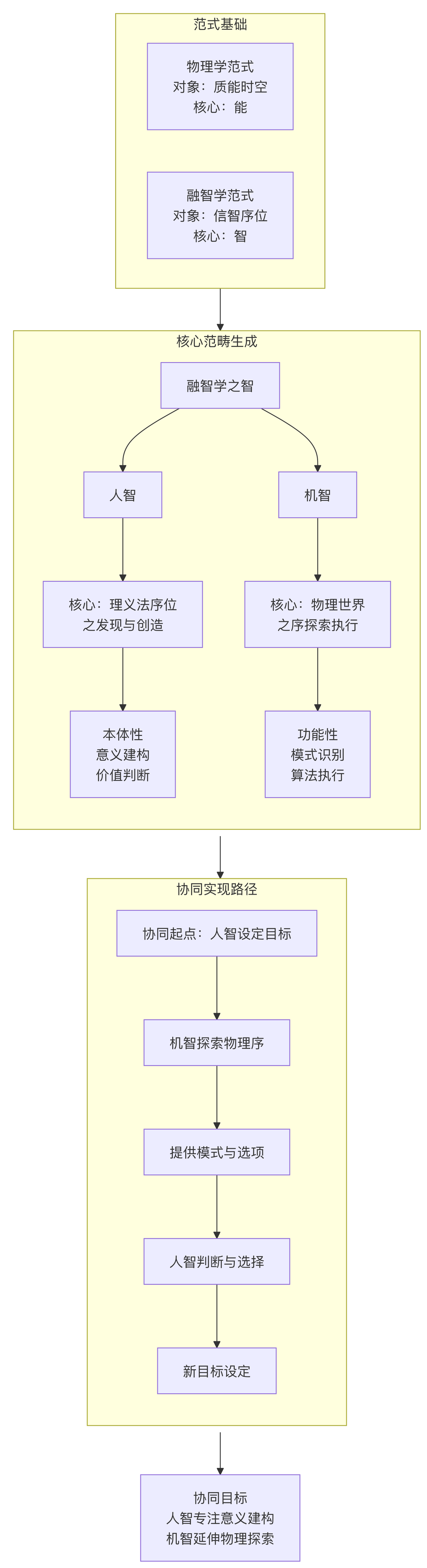 · “剥离”的深刻性:意味着融智学不再试图用物理学的“力/能”语言最终解释智,而是坦然承认“智”有其独特的、不可还原的层级和规律——即物理、意义、文法与序位的存在及人机协同之智的存在及其进一步发展遵循规律。
