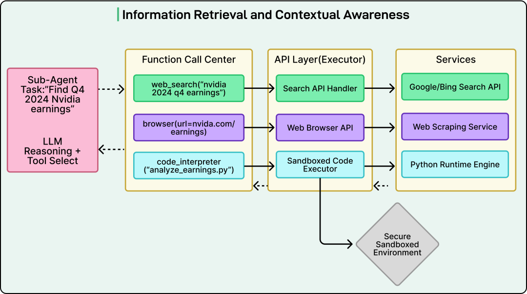 代码解释器工具(Code interpreter tool):面对数值或数据密集型任务时,代理可以编写 Python 代码并在安全沙箱环境中执行。代码解释器可以读取 CSV 数据、计算平均值或运行基础分析,代理随后读取输出并把发现纳入报告。