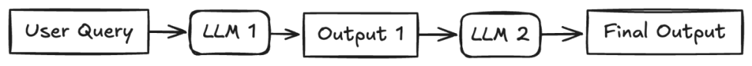 该模式中,一次大语言模型调用的输出会依次作为下一次调用的输入。它将一项任务分解为固定的连续步骤,每个步骤由一次大语言模型调用处理,且该调用会接收前一步骤的输出结果。这种模式适用于可清晰拆分为可预测、连续子任务的场景。