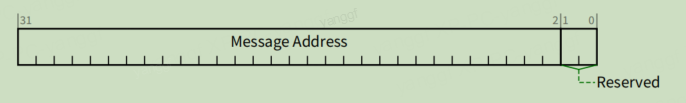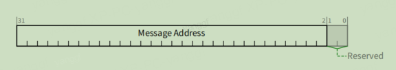 存放 MSI 存储器写事务目的地址的低 32 位,bit[1:0] 为 0,4 字节对齐,该地址由系统软件分配并设置 |
