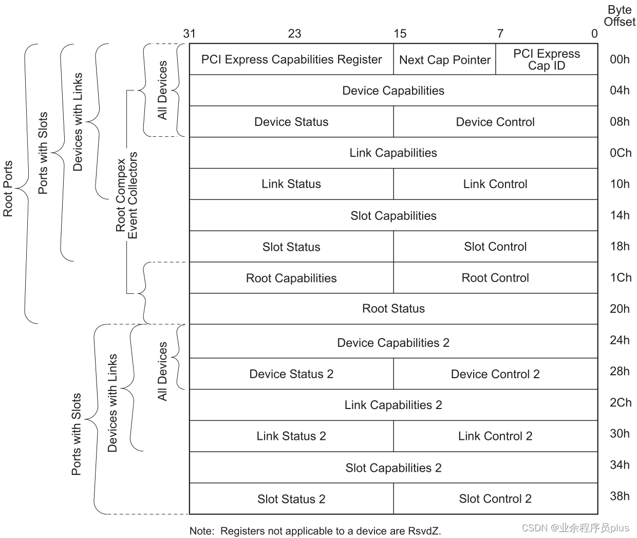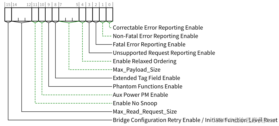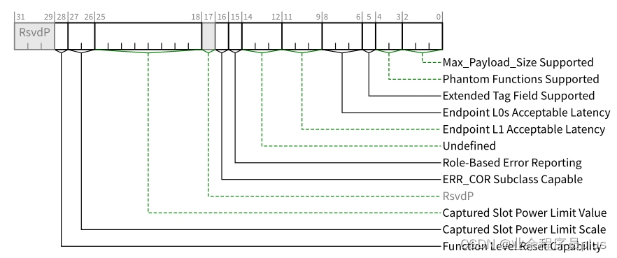 - 100h-FFFh(3840字节)是PCIe协议扩展的可选配置空间,主要存放AER、虚拟通道、设备序列号等Capability Structures。100h-FFFh只能通过PCIe ECAM访问。