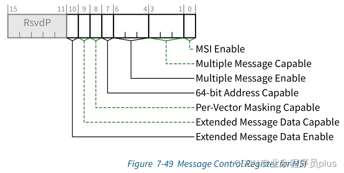 存放MSI中断屏蔽位。系统软件可以向某个bit写1,此时会将对应的中断禁止,清零时会使能对应的中断 |