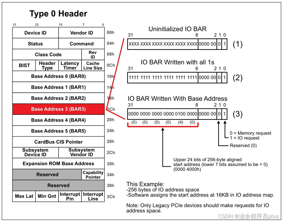 备注:0-FFh(256字节)是PCI兼容配置空间,可通过传统的PCI方式(基于ID寻址)或PCIe ECAM(Enhanced Configuration Access Mechanism)访问。