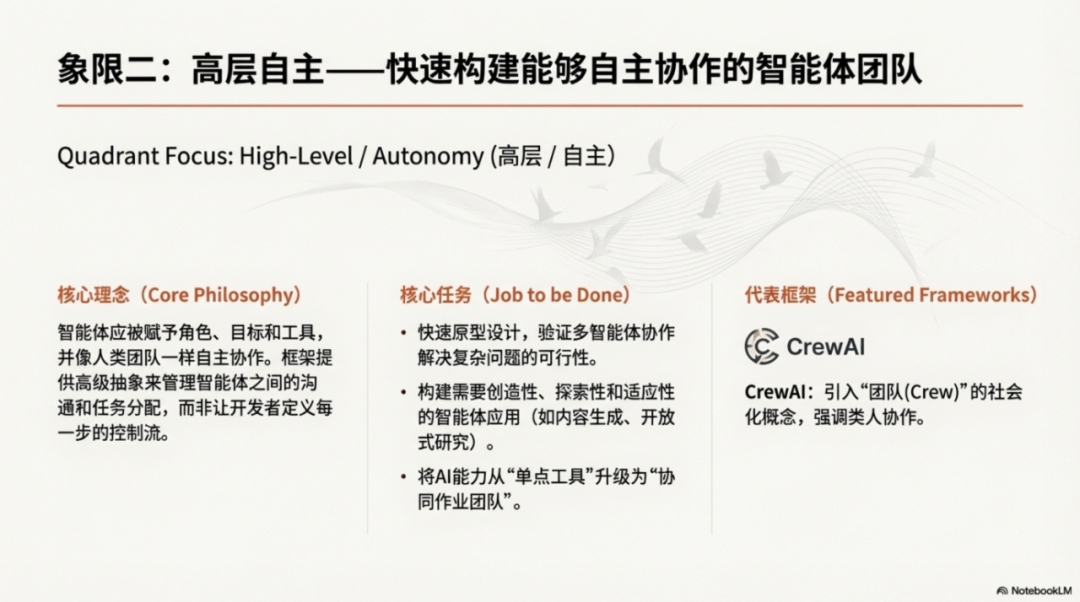 - 学习框架:如OpenAI Swarm,适合快速构建原型,但缺乏生产级支持。