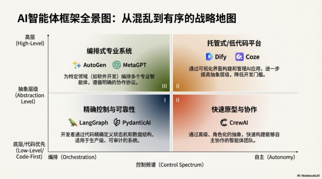 - 生产框架:如MetaGPT、Dify,提供低代码和团队协作支持。