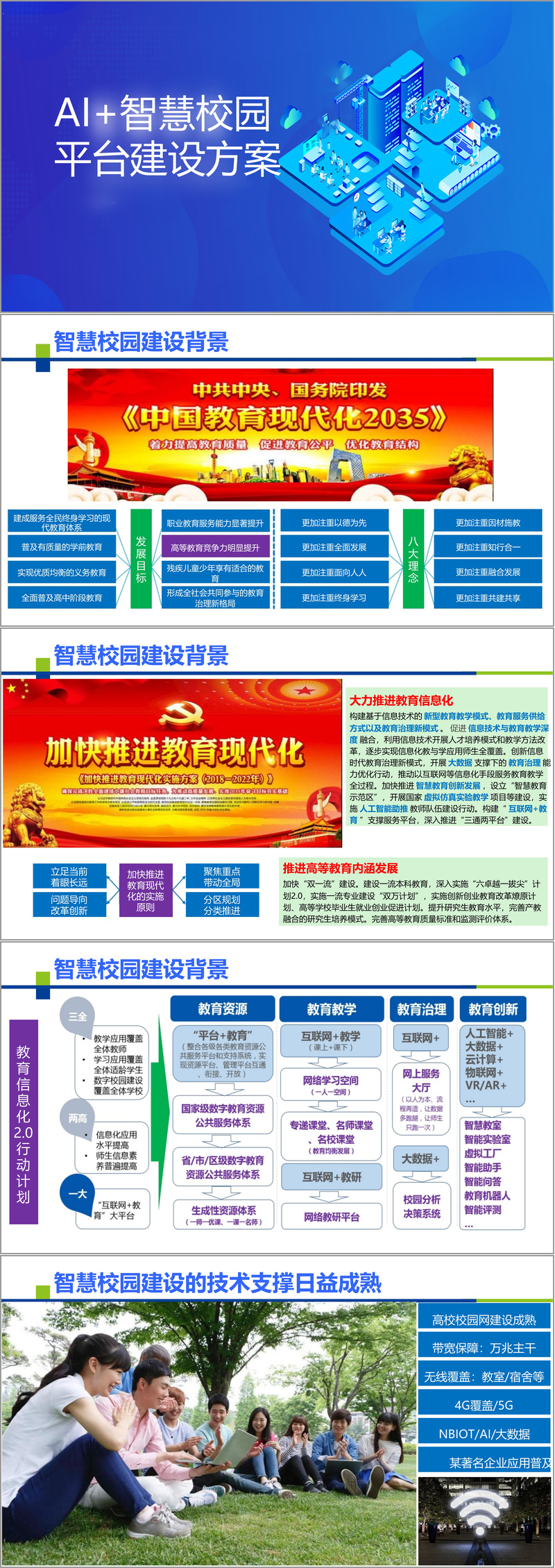 在教育现代化与信息化深度融合的时代背景下,“AI+智慧校园平台建设方案”为我们描绘了一幅以人工智能等前沿技术为核心驱动力的未来教育生态全景图。该方案并非单纯的技术堆砌,而是立足于国家教育发展目标,以“更加注重因材施教、全面发展、知行合一”等八大理念为指引,旨在构建一个服务于教学、管理、生活、决策等全方位的智能教育环境。