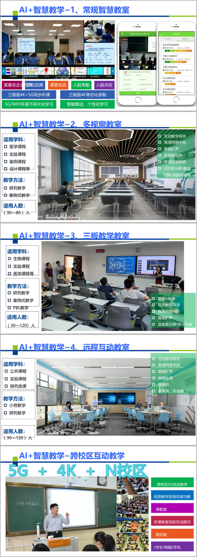 方案的提出,紧密对接我国教育信息化2.0行动计划的要求,即实现“教学应用覆盖全体教师、学习应用覆盖全体适龄学生、数字校园建设覆盖全体学校”的“三全”目标,以及“信息化应用水平提高、师生信息素养普遍提高”的“两高”目标,最终建成“互联网+教育”大平台。方案细致地分类了多种智慧教室,包括适用于常规授课的常规智慧教室、支持小组讨论与探索的研讨型智慧教室、便于多画面展示的多视窗教室、结合理论与实践的理实一