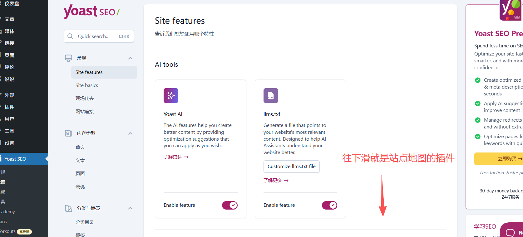 手动安装 WordPress 后,Yoast SEO 是必备的第一款插件。它不仅能优化关键词,还能自动生成 llms.txt—— 这是 AI 时代的 “通行证”。