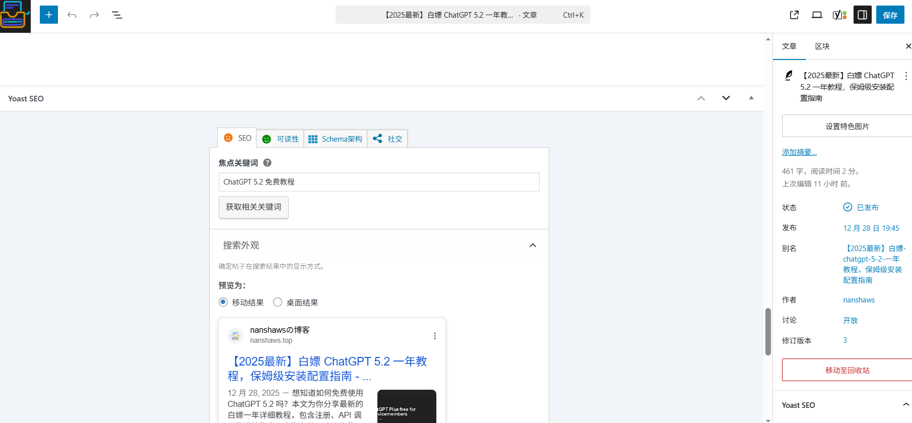 2025 硬核实战:手动部署 Yoast SEO 并搞定 Google 站点地图,解决“无法抓取”全攻略 - nanshawsの博客