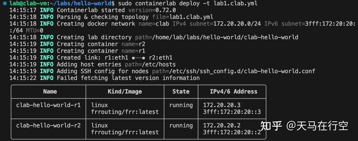 登录 R1: docker exec -it clab-hello-world-r1 vtysh