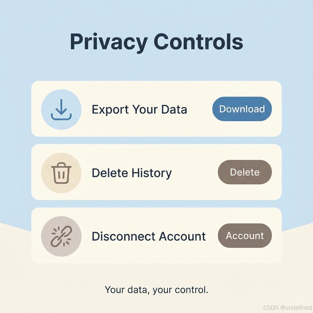 因此应当把“一键导出、一键删除、一键断联”放在核心入口;