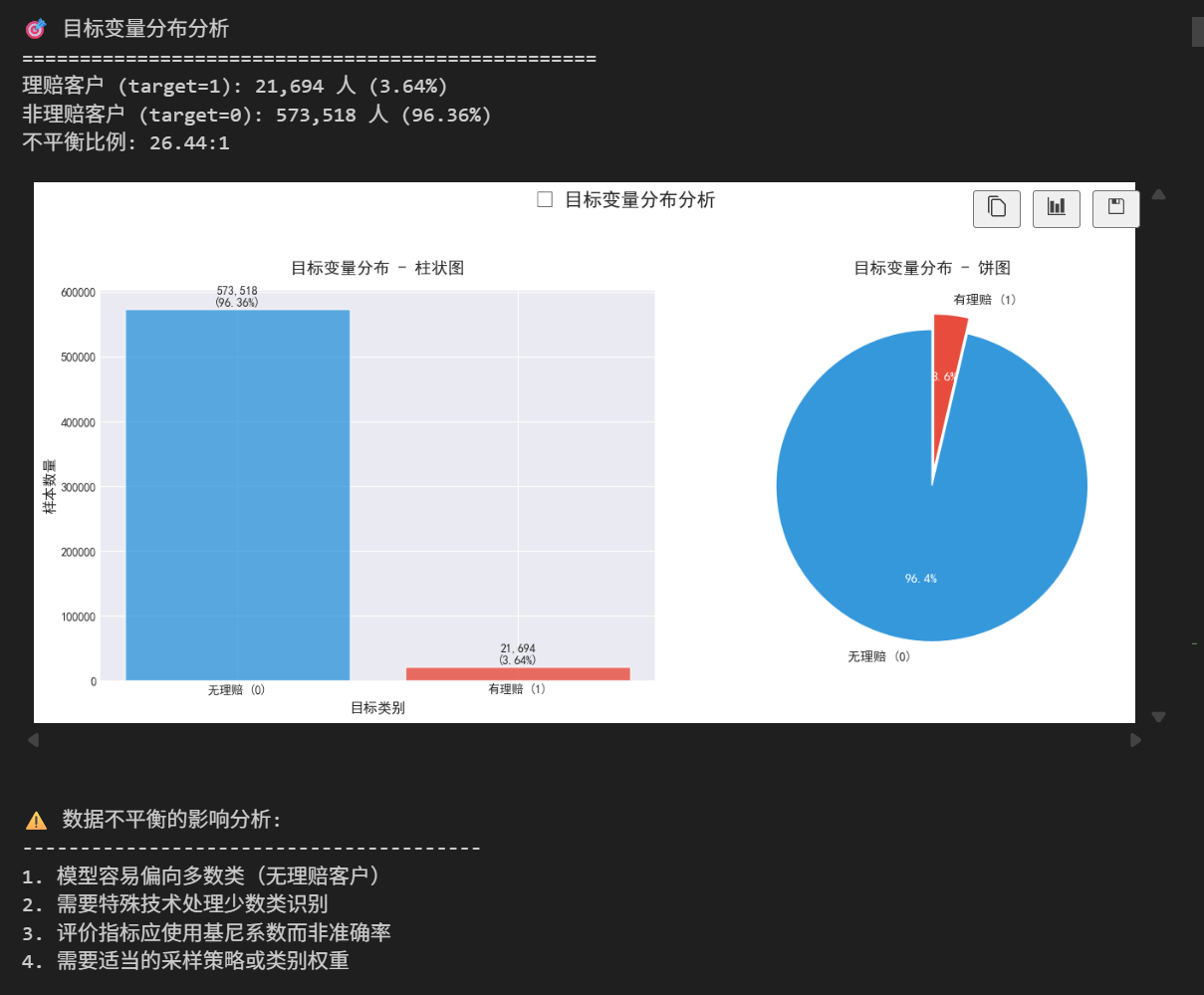 print(f"非理赔客户 (target=0): {target_counts[0]:,} 人 ({target_percentages[0]}%)")