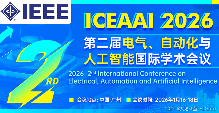 第二届电气、自动化与人工智能国际学术会议(ICEAAI2026)将于2026年1月16-18日在广州举行。会议由广东省工业软件学会主办,多所高校协办,IEEE提供技术支持。会议涵盖电力工程、自动化制造和人工智能三大主题,包括电力系统控制、智能制造、机器学习等研究方向。录用论文将由IEEE出版,并提交至IEEEXplore、EI和Scopus检索。