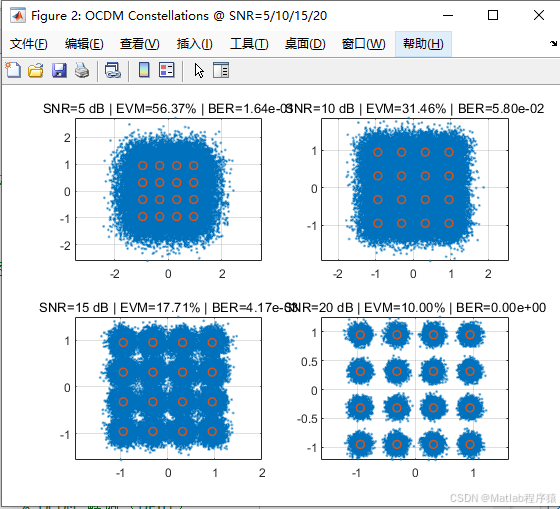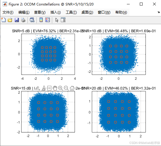 【MATLAB源码-第385期】基于matlab的OCDM调制的通信与感知一体化系统,输出误码率曲线与星座图。