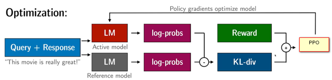 - 为了防止模型为了获得高奖励而“走火入魔”(例如,生成一堆无意义的、但恰好能骗过奖励模型的词),我们引入了一个KL散度惩罚项: