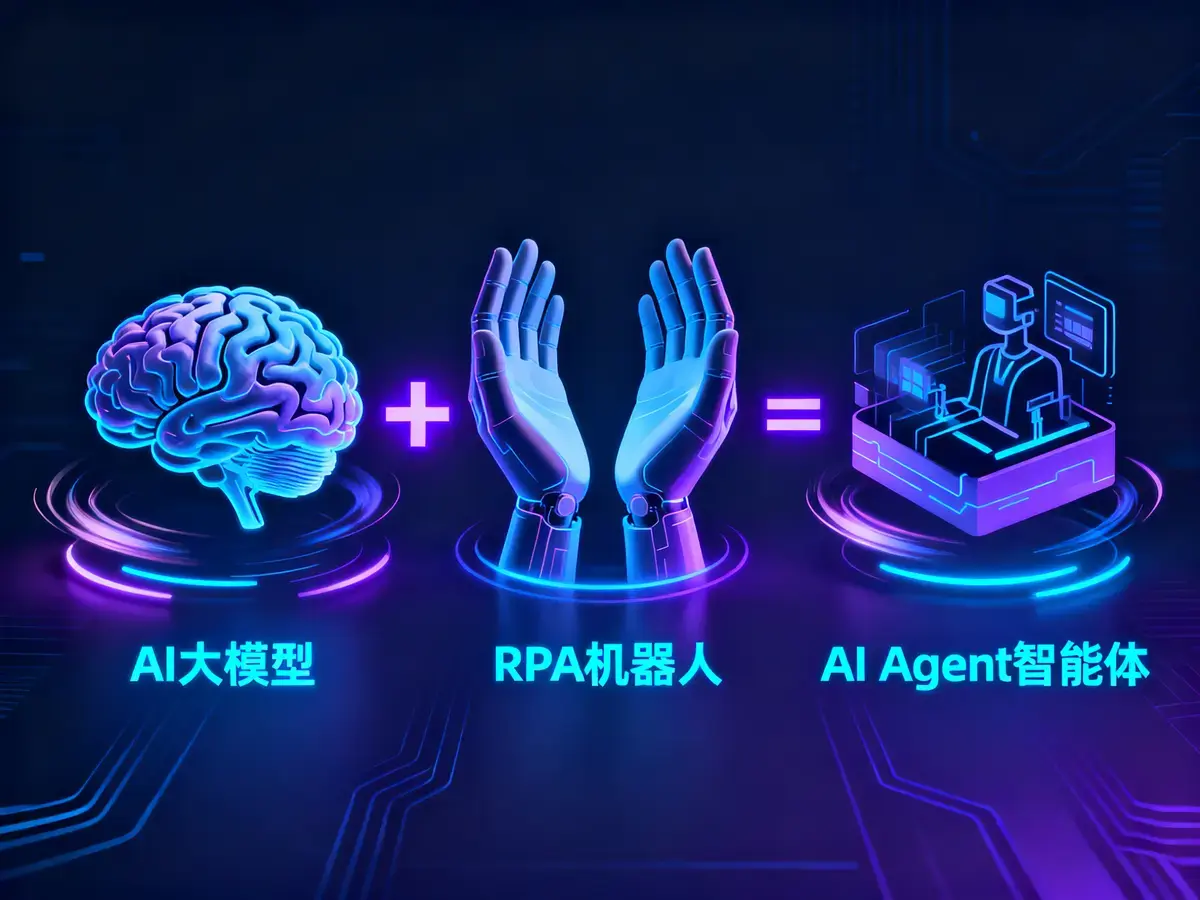 理解AI Agent,可借助一个形象的比喻:大模型是“智慧大脑”,RPA(机器人流程自动化)是“灵巧双手”。