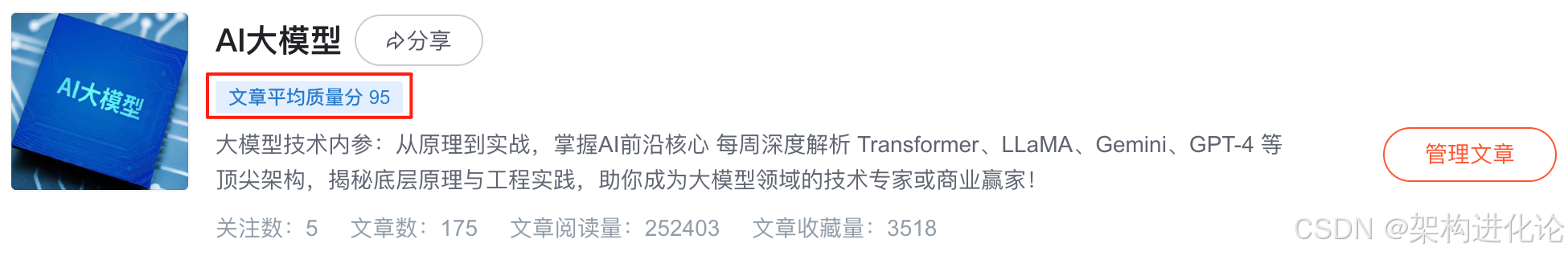 在这场变革中,我——一名经历传统机器学习洗礼的技术人,亲历了技术赛道的切换,并以超过170篇大模型相关的深度技术文章,记录下这场变革背后的核心逻辑与工程智慧。
