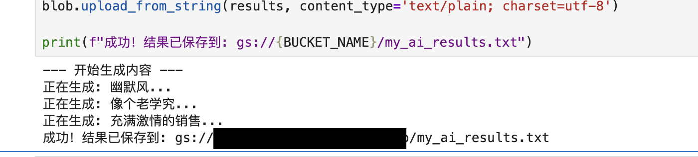 print(f"成功!结果已保存到: gs://{BUCKET_NAME}/my_ai_results.txt")