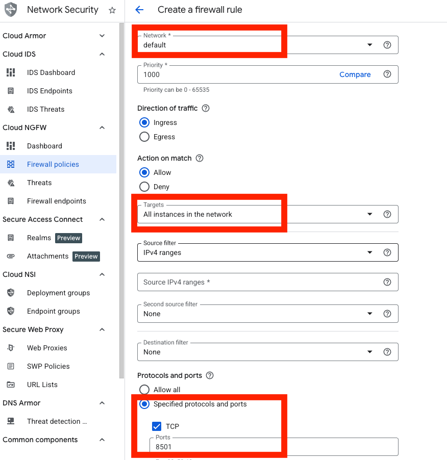 - 进入 Google Console 导航栏 → VPC Network → Firewall