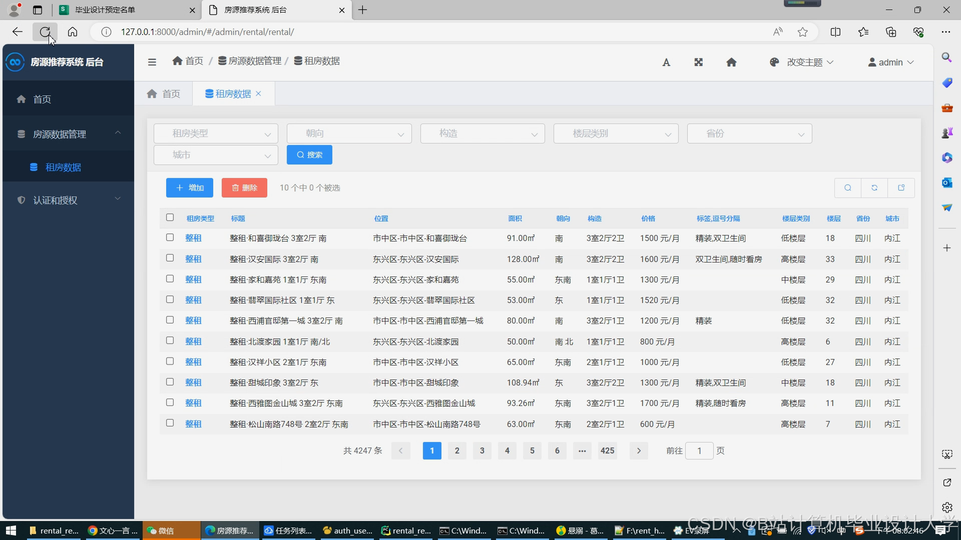 计算机毕业设计Django+Vue.js租房推荐系统 租房大屏可视化 大数据毕业设计(源码+LW文档+PPT+讲解)