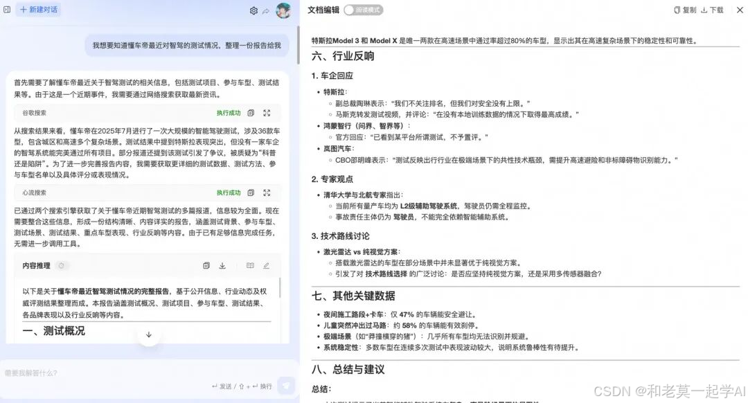 如上图所示,实际上提供的子智能体或者工具没有一个是进行路线规划报告生成的,但因为有一个通用的内容补充工具,在这个case的执行过程中就会适时的生成一份详细的路线规划,给到主智能体足够丰富的知识,因此最终推理的结果也是质量较高。