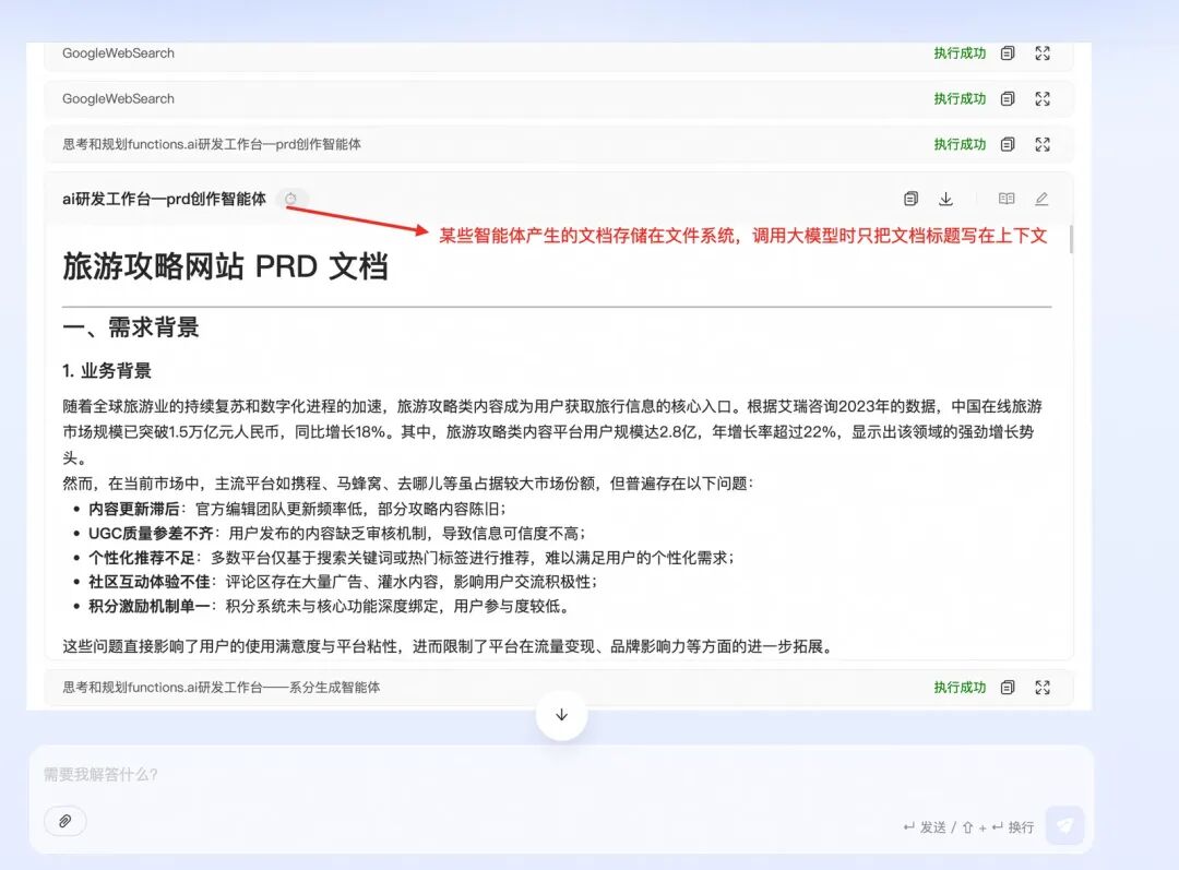 不使用总结工具的输出如下,最终生成的内容只是“xxx已经生成完毕,如有xxxx随时告诉我”,用户需要爬楼去找真正输出xxx文档的那一步的结果。
