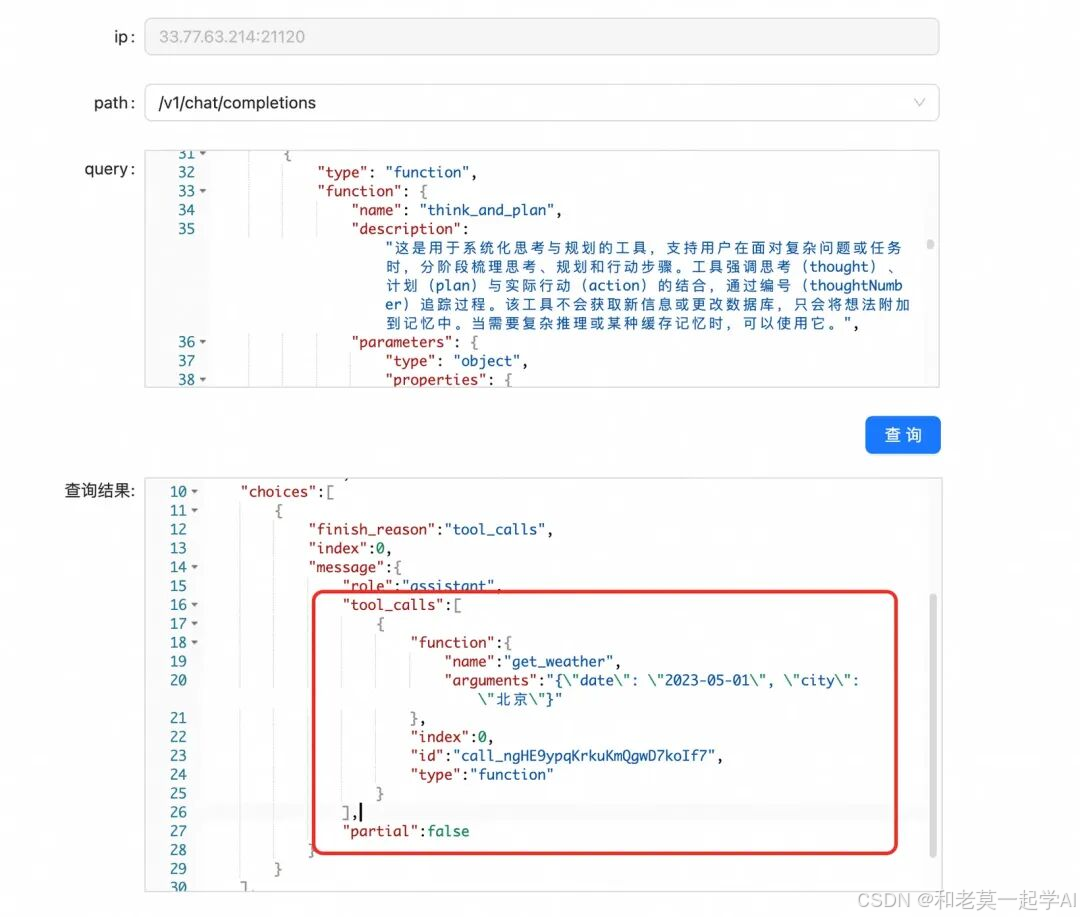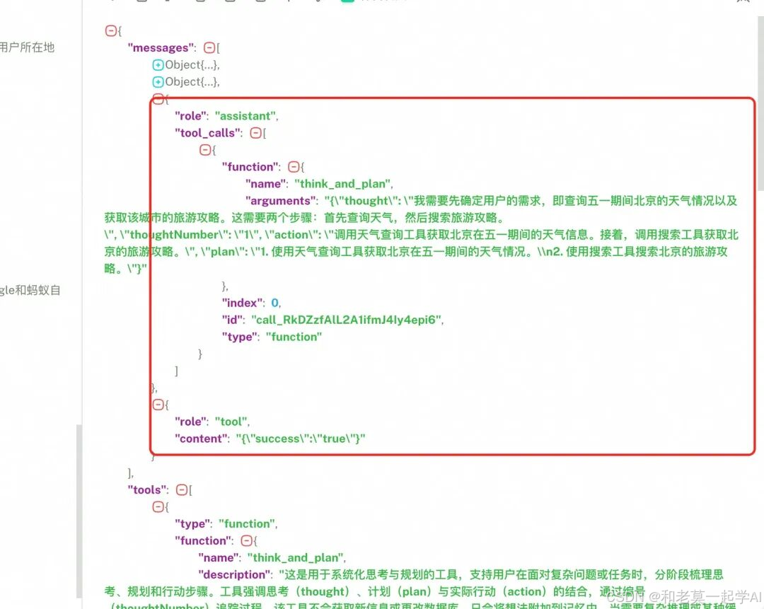 原本使用FunctionCall的输出结果如下:(functionCall时将思考规划作为单独的工具,用XML的时候我将工具推理和思考规划统一放在一步里面完成),展示形式不够友好,用户看到的只是平铺的一整段工具调用。