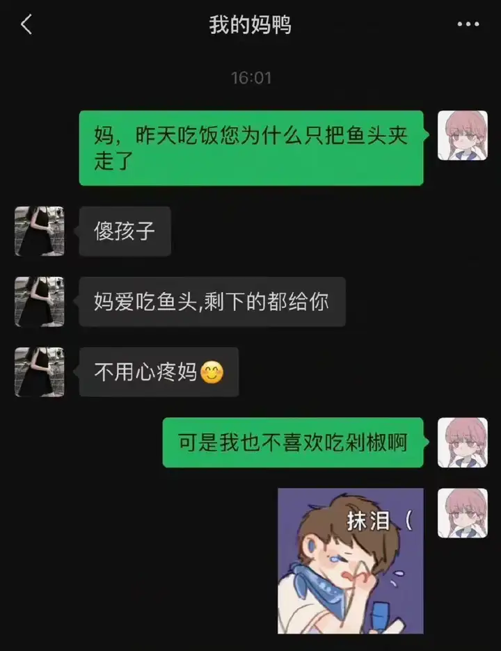 起因是看到一张很有“母慈子孝”味道的聊天记录,就是下面这张。