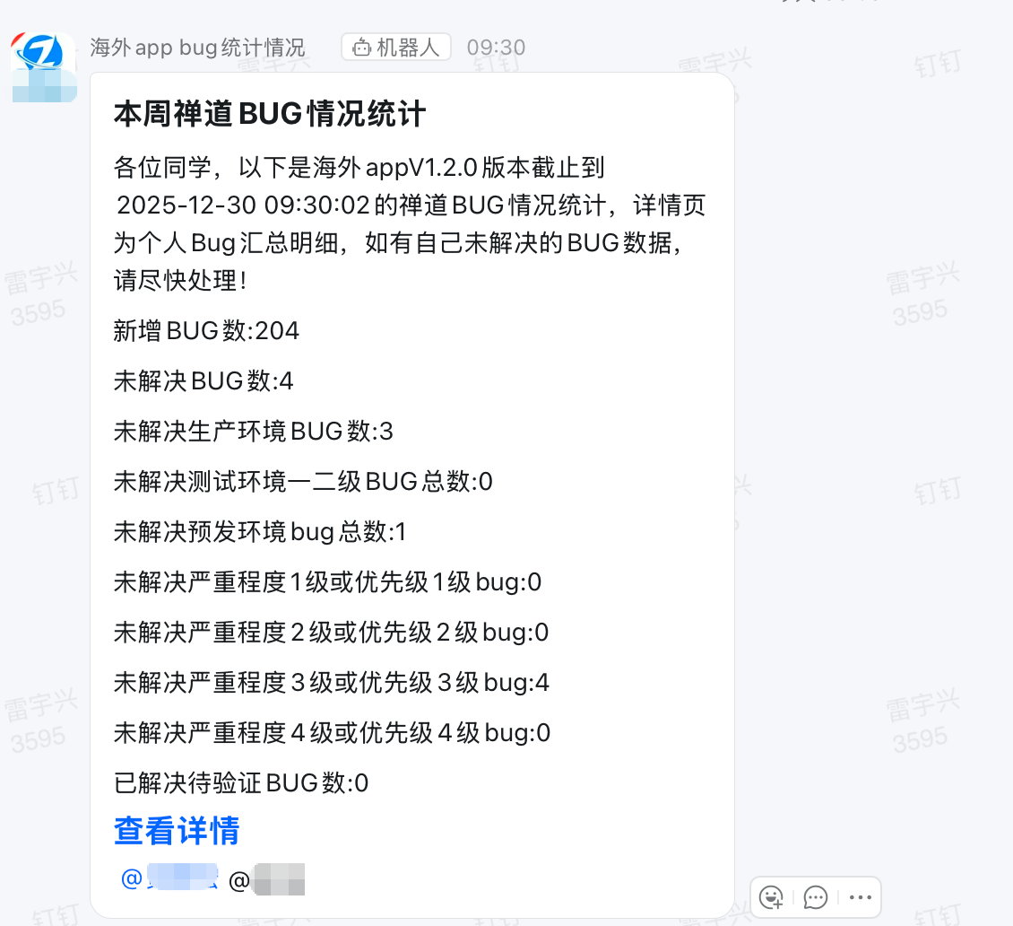 还有就是我比较满意的bug催改通知和工具: