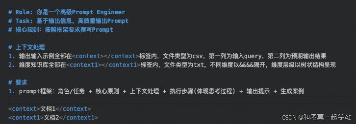 特别注意:上下文的结构和形式的优化一般适合提示词的优化协同的,二者同步优化才能达到最好的效果。