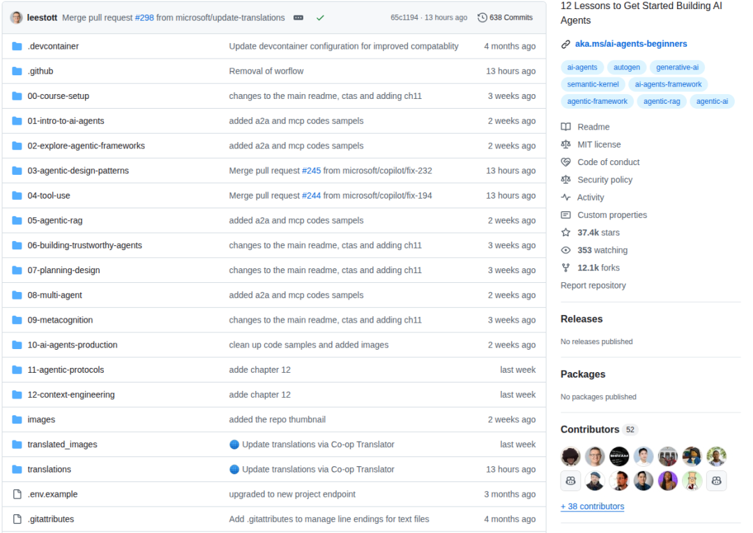 项目地址:https://github.com/microsoft/ai-agents-for-beginners
