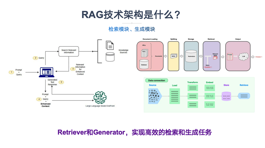 RAG技术架构是什么? RAG技术架构主要由两个核心模块组成,检索模块(Retriever)和生成模块(Generator)。