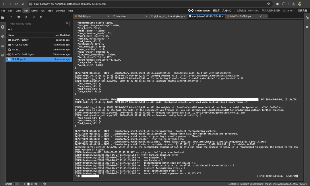 等以上所有步骤完成后,准备工作就做好了,现在可以开始准备微调了。
