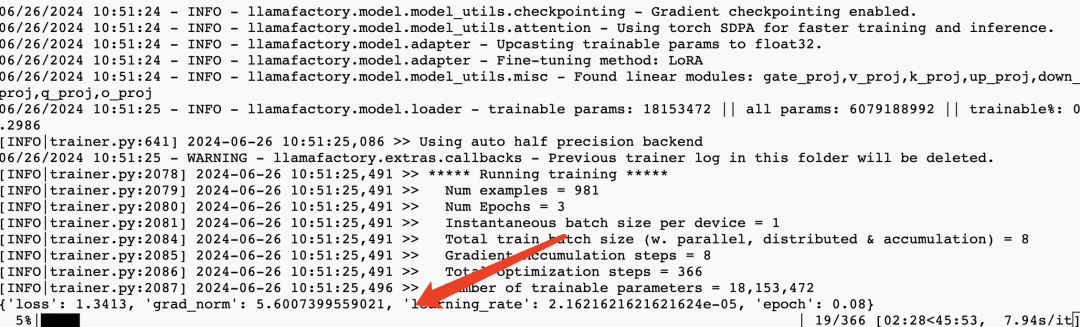 在 LLaMA-Factory 目录下,输入以下命令启动微调脚本(大概需要10分钟)