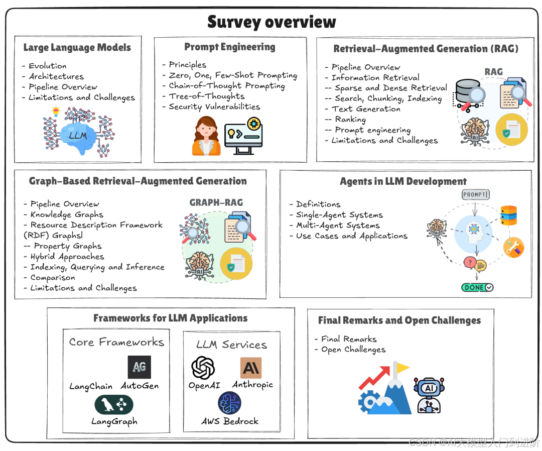 同时,大模型的研究方向是非常宽泛的,包括但不限于LLM本身,还包括提示词工程,检索增强生成及其各种变形,Agent LLM,LLM 应用框架等方向。