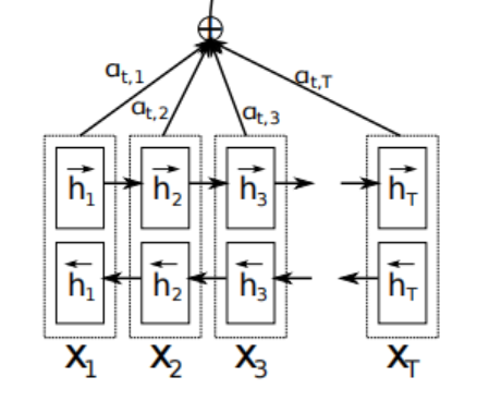 这样对于任意一个时间步t,encoder都能够看到双向的信息,也就是有下面这个拼接向量带来的信息:
