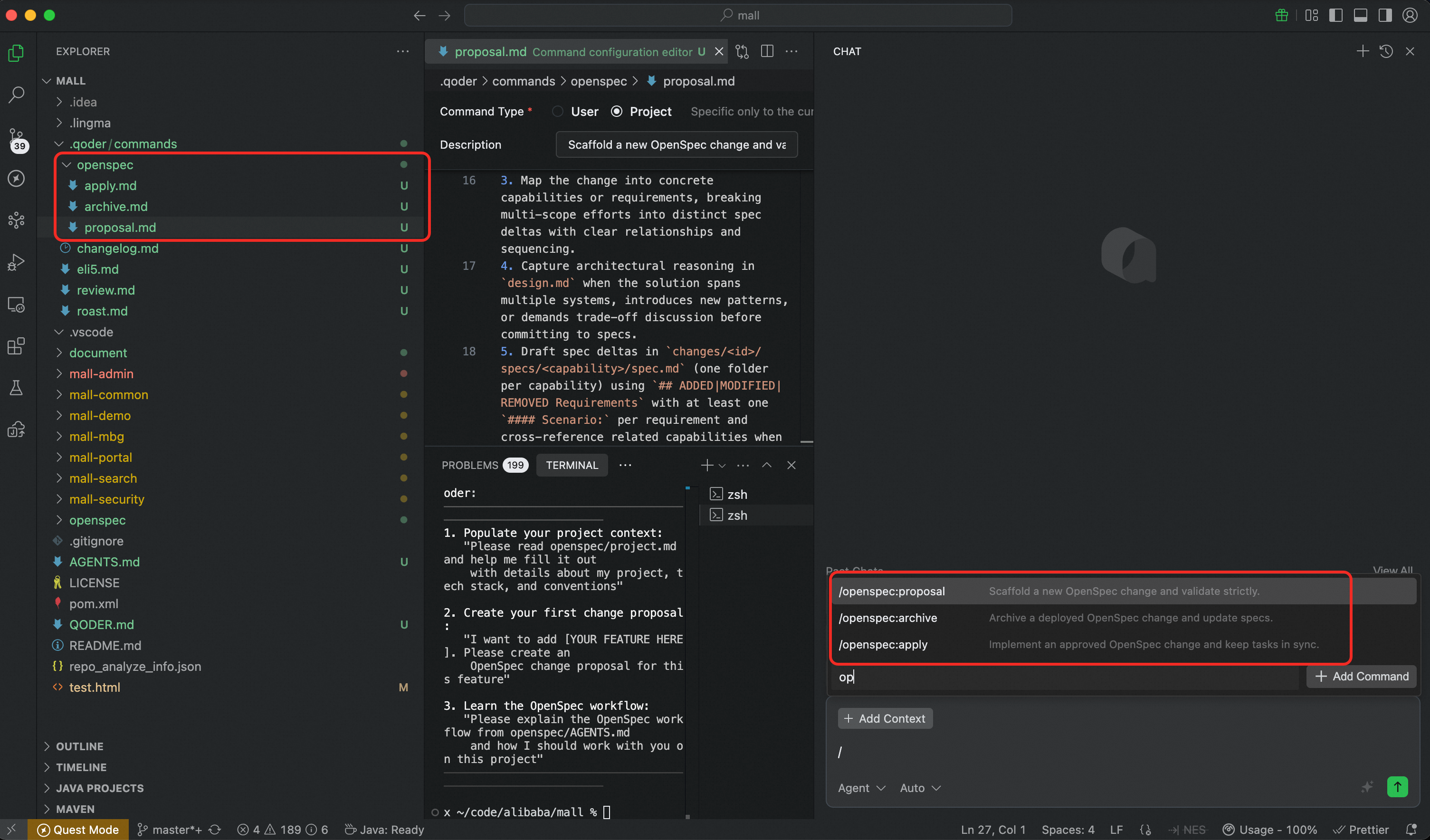 下面是 Qoder 里安装和使用 OpenSpec 的过程:
