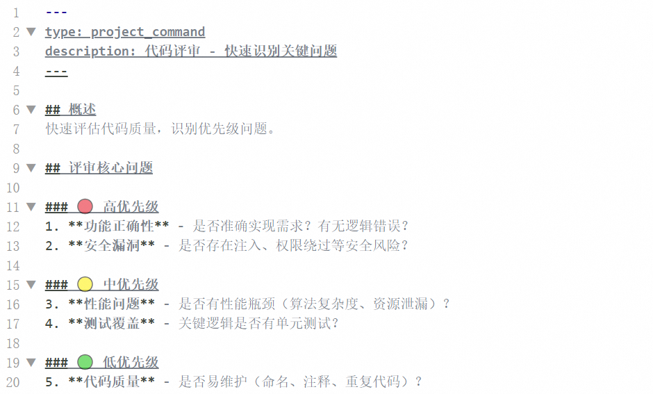 比如你配置了一个 /review,里面写的是:你对代码质量有洁癖、讨厌滥用泛型、关注性能优化点等。
